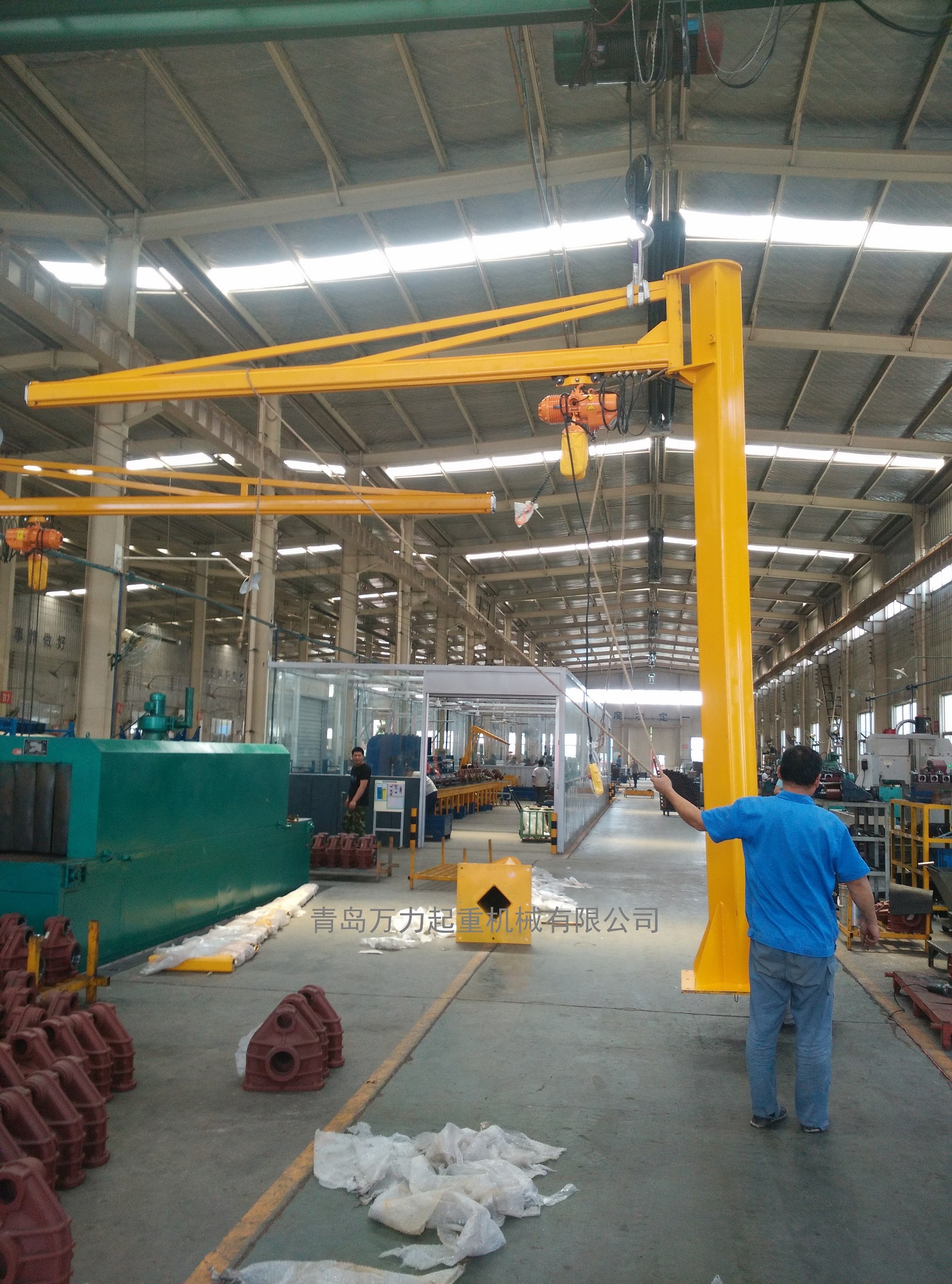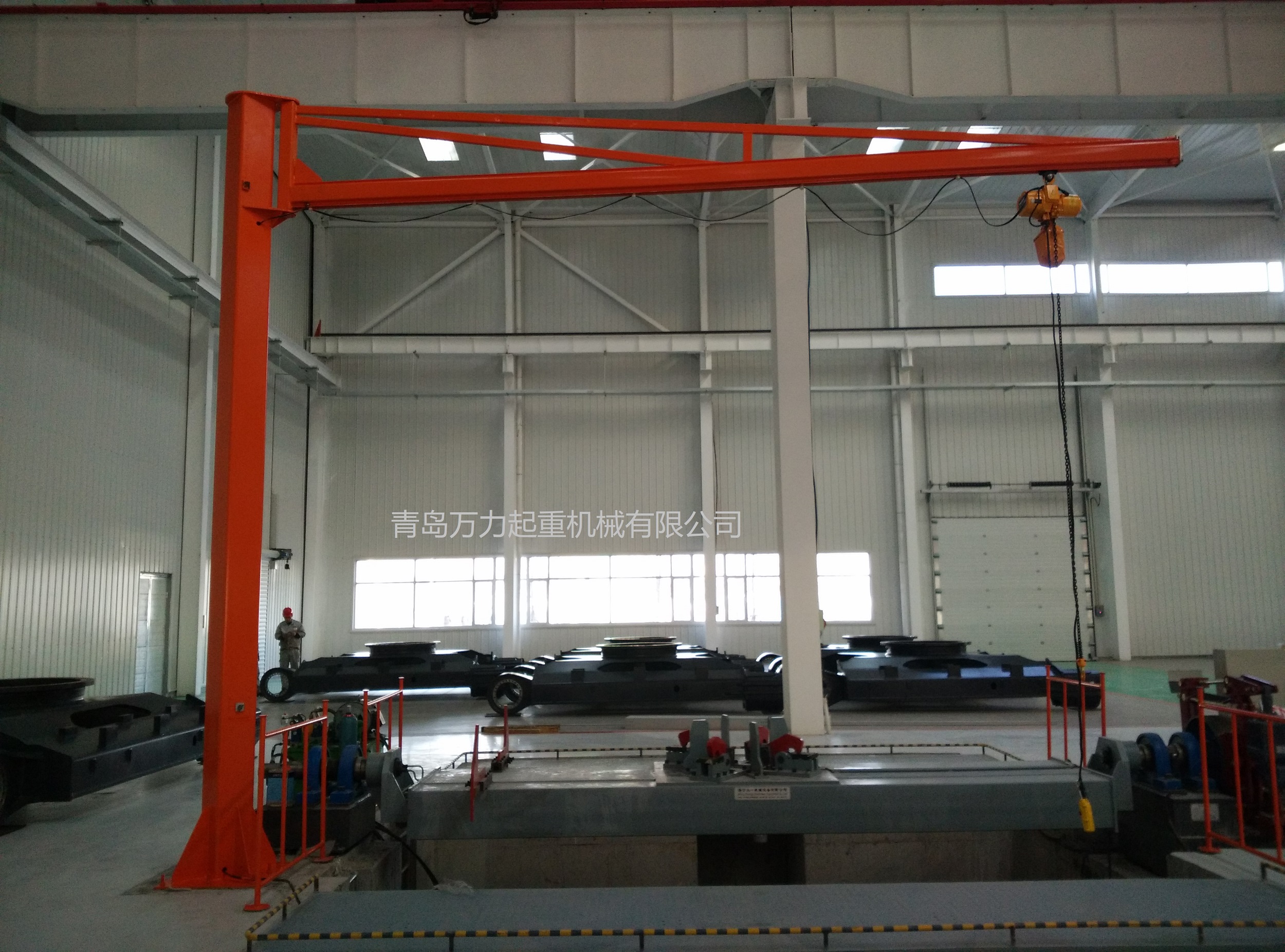 要設(shè)計(jì)方案的專用型起重機(jī)械。具備構(gòu)造新奇、有效、簡易、實(shí)際操作方便使用、旋轉(zhuǎn)靈便、安全作業(yè)室內(nèi)空間大等優(yōu)勢,是環(huán)保節(jié)能高效率的原材料吊裝武器裝備??善毡檫\(yùn)用于廠礦、生產(chǎn)車間的生產(chǎn)流水線、裝配流水線和數(shù)控車床的上下左右鋼件及庫房、港口等場所的吊物吊裝。本機(jī)由立桿、旋轉(zhuǎn)懸臂及環(huán)鏈電動葫蘆等構(gòu)成。立桿下方固定不動于混凝土基本上,懸臂旋轉(zhuǎn),可依據(jù)客戶要求開展旋轉(zhuǎn)。